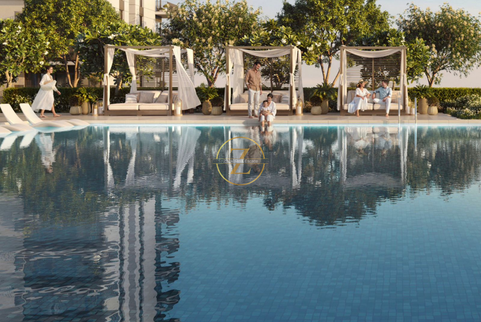 Swimming Pool with Sun Deck and Cabanas