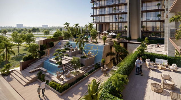 Landscaped gardens, outdoor lounges, and resort-style surroundings